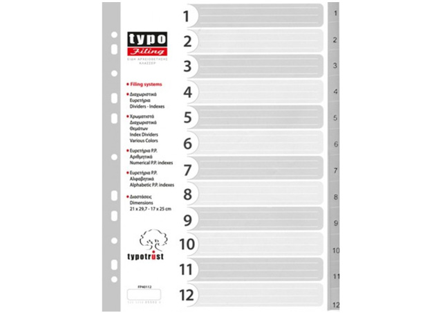 ΔΙΑΧΩΡΙΣΤΙΚΑ A4 ΠΛΑΣΤΙΚΑ ΣΕΤ 1-12 ΑΡΙΘΜΗΤΙΚΑ ΣΕ ΓΚΡΙ ΧΡΩΜΑ ΕΤΑΙΡΙΑΣ ΤΥΠΟΤΡΑΣΤ