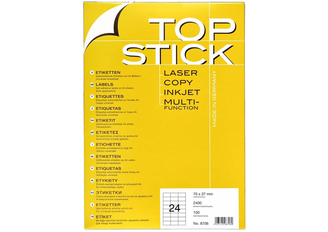 ΕΤΙΚΕΤΕΣ TOP STICK ΕΚΤΥΠΩΣΙΜΕΣ ΣΕ ΛΕΥΚΟ ΧΡΩΜΑ ΔΙΑΣΤΑΣΗΣ 70Χ37mm , 24ΤΜΧ ΣΤΟ ΦΥΛΛΟ ΣΕ ΣΥΣΚΕΥΑΣΙΑ 100 ΦΥΛΛΩΝ.